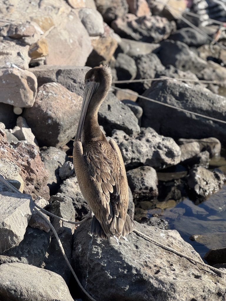 The day warms. Pelicans follow their mid-morning patterns. The sea continues its rhythms.