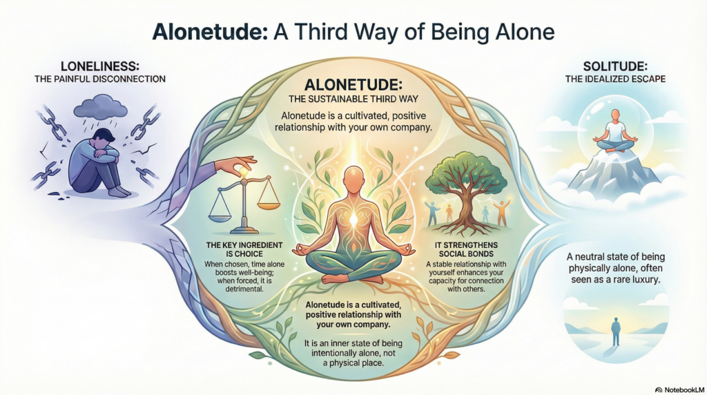 Alonetude is not a destination reached once and for all. It is a relationship developed over time. It allows a person to move through the world without constant self-abandonment, to be with others without depletion, and to return to oneself as a place of steadiness.